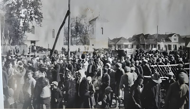 Zdjęcie wykonano w 1930 roku w dniu pogrzebu Józefa Cwenka - żołnierza (ochotnika) armii amerykańskiej, który poległ w walce z bolszewikami w północnej Rosji w 1919 r. i ma swój grób na miejscowym cmentarzu.